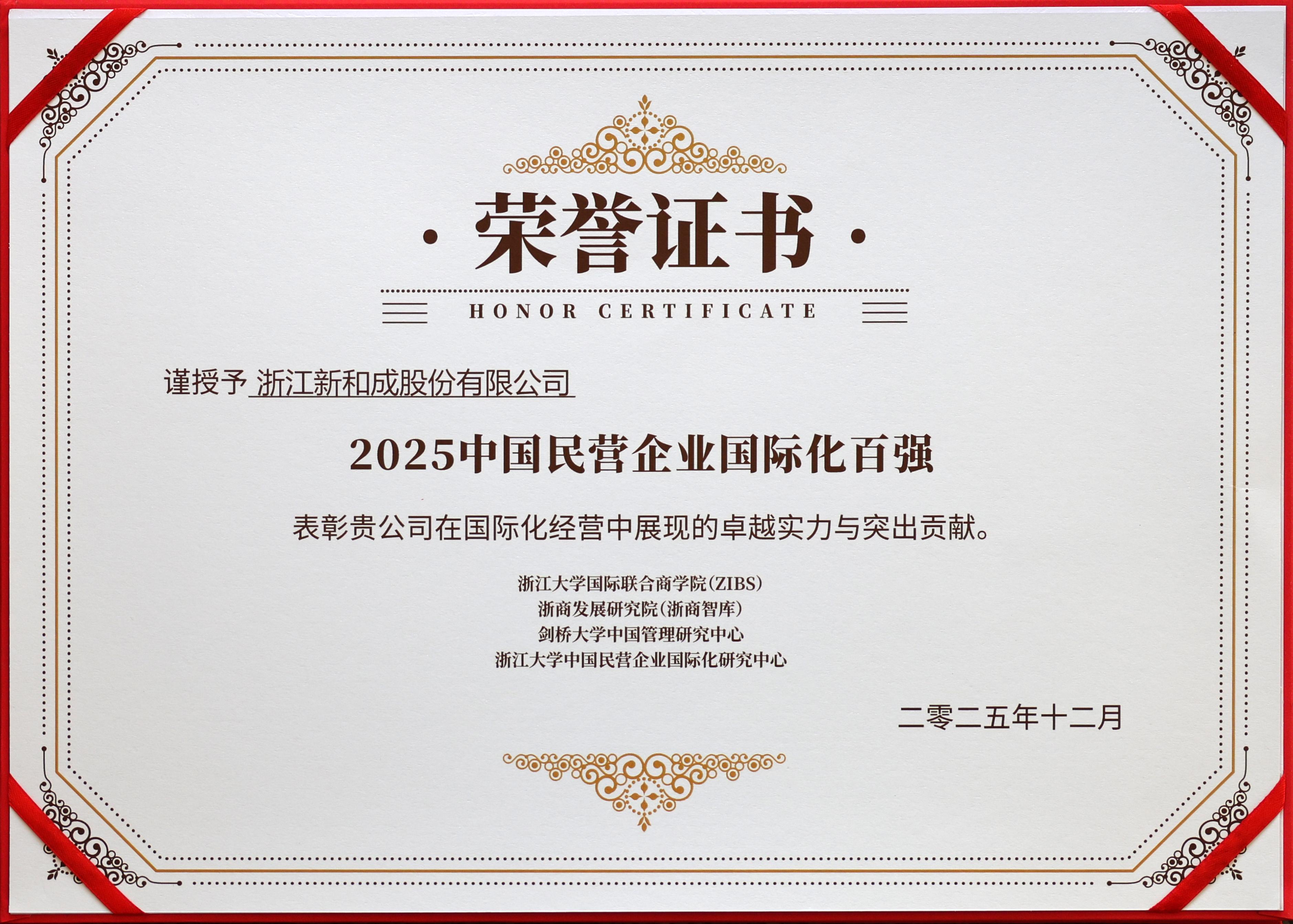 On December 12, the forum “Resilience, Symbiosis, Leadership – Release of the Top 100 Chinese Multinational Private Enterprises and the Zhejiang Business Think Tank Dialogue on the 15th Five-Year Plan” was successfully held in Hangzhou. At the event, the Center For Chinese Multinationals (CCM) of Zhejiang University Business School (ZIBS) released the Top 100 Chinese Multinational Private Enterprises 2025 list. NHU was honored to be included, in recognition of its forward-looking global strategy, robust and continuously innovative R&D system, and growing international influence.