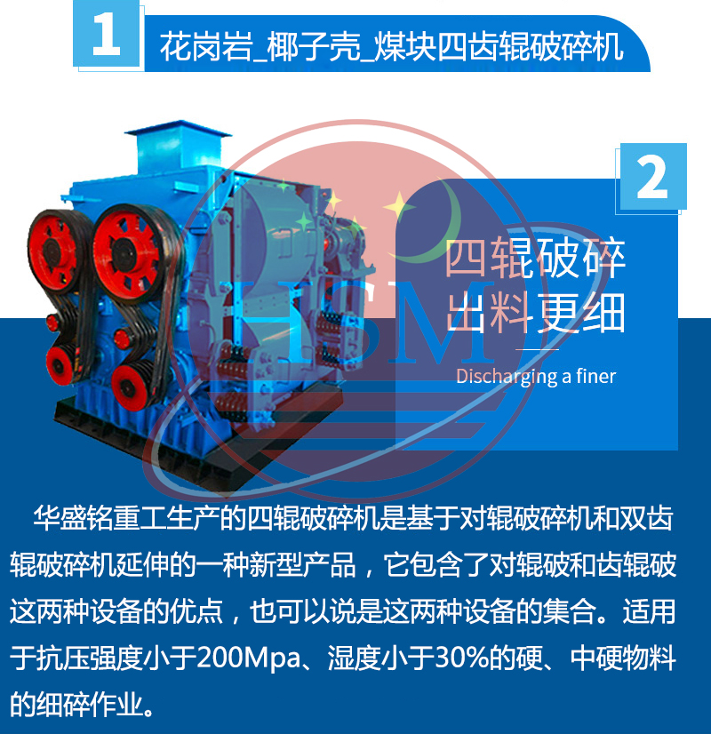 【產品介紹】:華盛銘重工生產的四輥破碎機是基于對輥破碎機和雙齒輥破碎機延伸的一種新型產品,它包含了對輥破和齒輥破這兩種設備的優(yōu)點,也可以說是這兩種設備的集合。本機器具有使用維修費特低、破碎比大、性能可靠、粉塵少、噪音低等特點。。